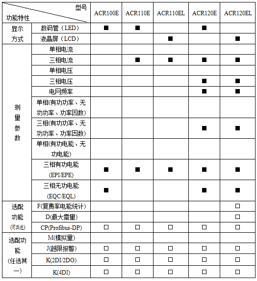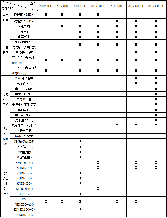 注:“■”為標配功能,“□”為選配功能。