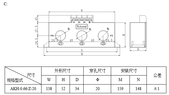 具體型號(hào):AKH-0.66/Z-3*Φ20