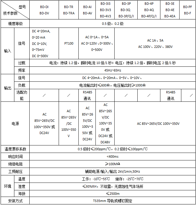 電壓變送器 BD-AV 測量單相交流電壓,隔離變送輸出4-20mA或0-5V DC信號 RS485-MODBUS