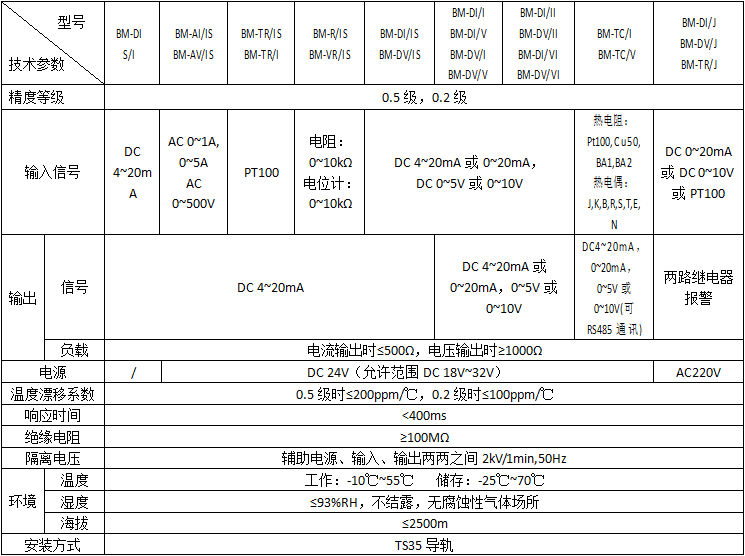 | 電流隔離器 | BM-DI/IS | 將直流電流信號隔離變為4-20mA輸出 | 二線制 |