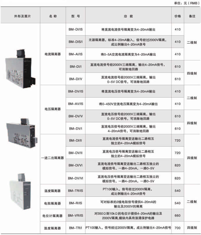 | 電壓隔離器 | BM-DV/IS | 將直流電壓信號隔離變為4-20mA輸出 | 二線制 |