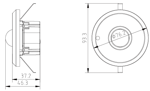 ASL100-T2/BM 2通道,分別探測光照度和人體感應。吸頂安裝。