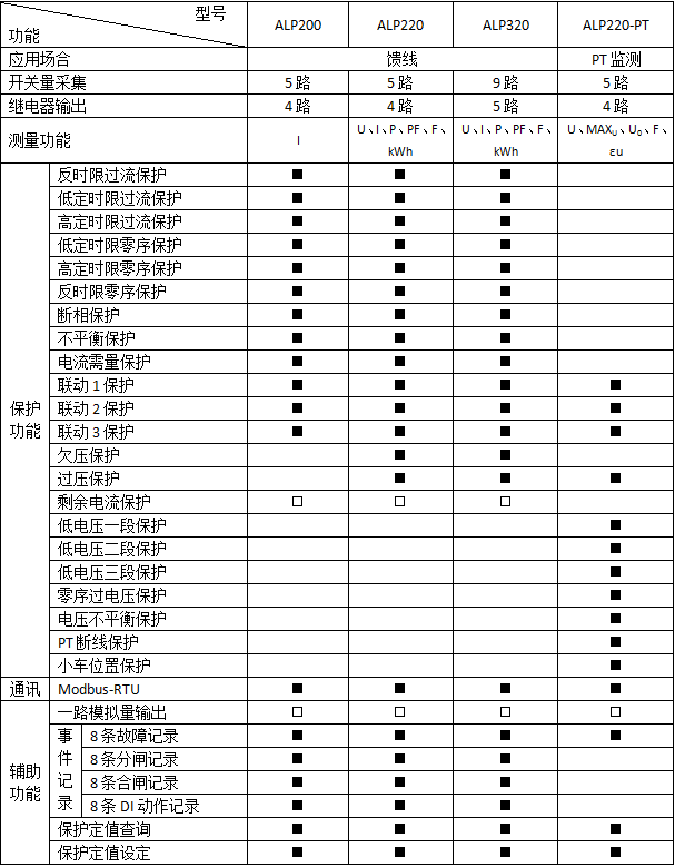 ALP系列低壓保護器集保護、測量、控制、總線通訊為一體,同時提供了遠程自動控制、現場直接控制、面板指示、信號報警、操作記錄、跳閘報警記錄及開關量記錄等功能。