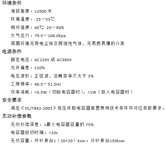 應用于0.4kV、50Hz低壓配電系統。
