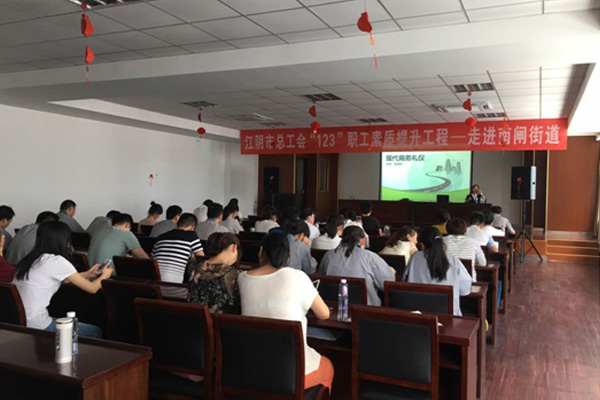 2017年6月9日下午,江陰市總工會“123”職工素質(zhì)提升工程走進南閘街道,在江蘇啟良提車設(shè)備有限公司舉辦了商務(wù)禮儀培訓。國家注冊企業(yè)培訓師陳麗虹講師為來自南閘街道各企業(yè)的員...